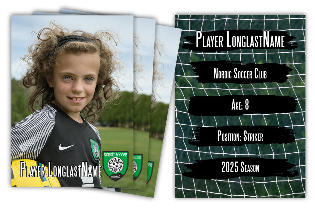 Showcase your athletic achievements with personalized trading cards that perfectly complement your portrait session. Each professionally designed card features your best action shots and stats. Available in convenient pack sizes: one pack (18 cards), two packs (36 cards), or three packs (54 cards) – ideal for sharing with family, friends, coaches, and teammates.